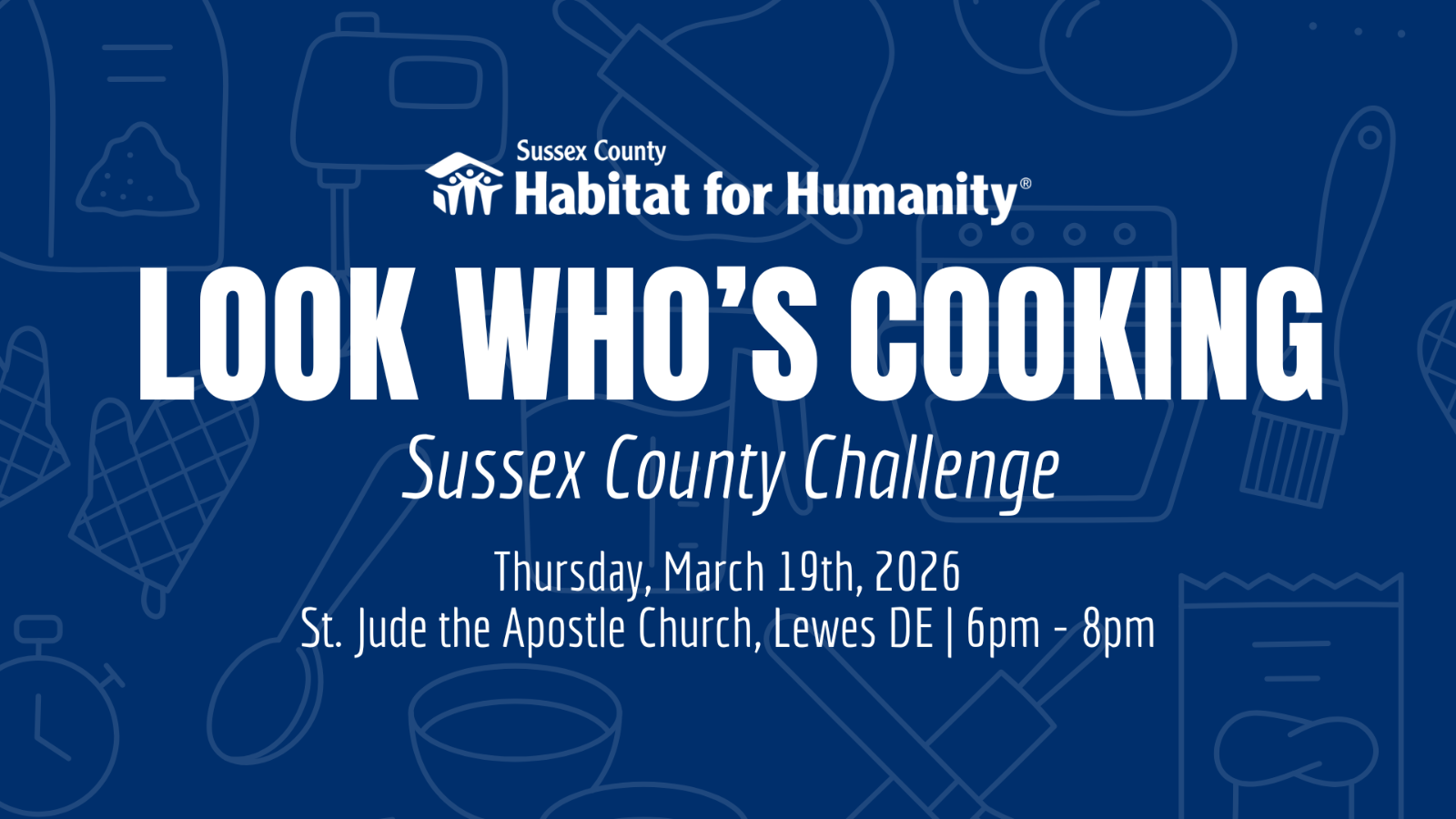 Join Sussex County Habitat for Humanity for 2026 Look Who’s Cooking! A signature fundraising event bringing together local chefs, community leaders, and supporters for a fun and flavorful night. Enjoy tastings, friendly competition, and the opportunity to support affordable housing in Sussex County!
